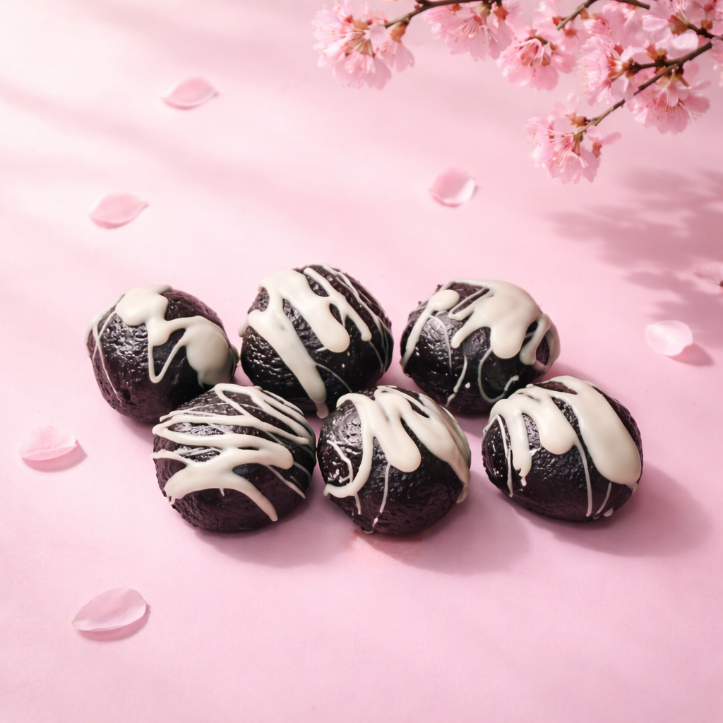 Al centro si trova un cuore cremoso di cioccolato bianco, che si fonde perfettamente con il sapore intenso del cacao dei biscotti Oreo. La superficie è rifinita con una decorazione di cioccolato bianco colato a mano, per un tocco finale elegante e ancora più goloso.